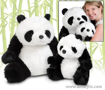 These Cuddly Pandas are just too cute for words. We've only just managed to photograph them - it was an absolute nightmare distracting our designer so we could steal them back and move them to the studio. And who can blame her? Those big soppy eyes, cute furry panda faces and fur coats that are softer than soft (we're talking about the toy, not the designer) make them almost impossible to put down. Well, if you're lucky enough to bring them home you won't have to. You could quite easily fall asleep on them, face squashed against their plush ears. Patch The Panda and Little Patch are sold separately, and, while it would be a shame to split them up, we're sure you'll take good care of them. Buy Here